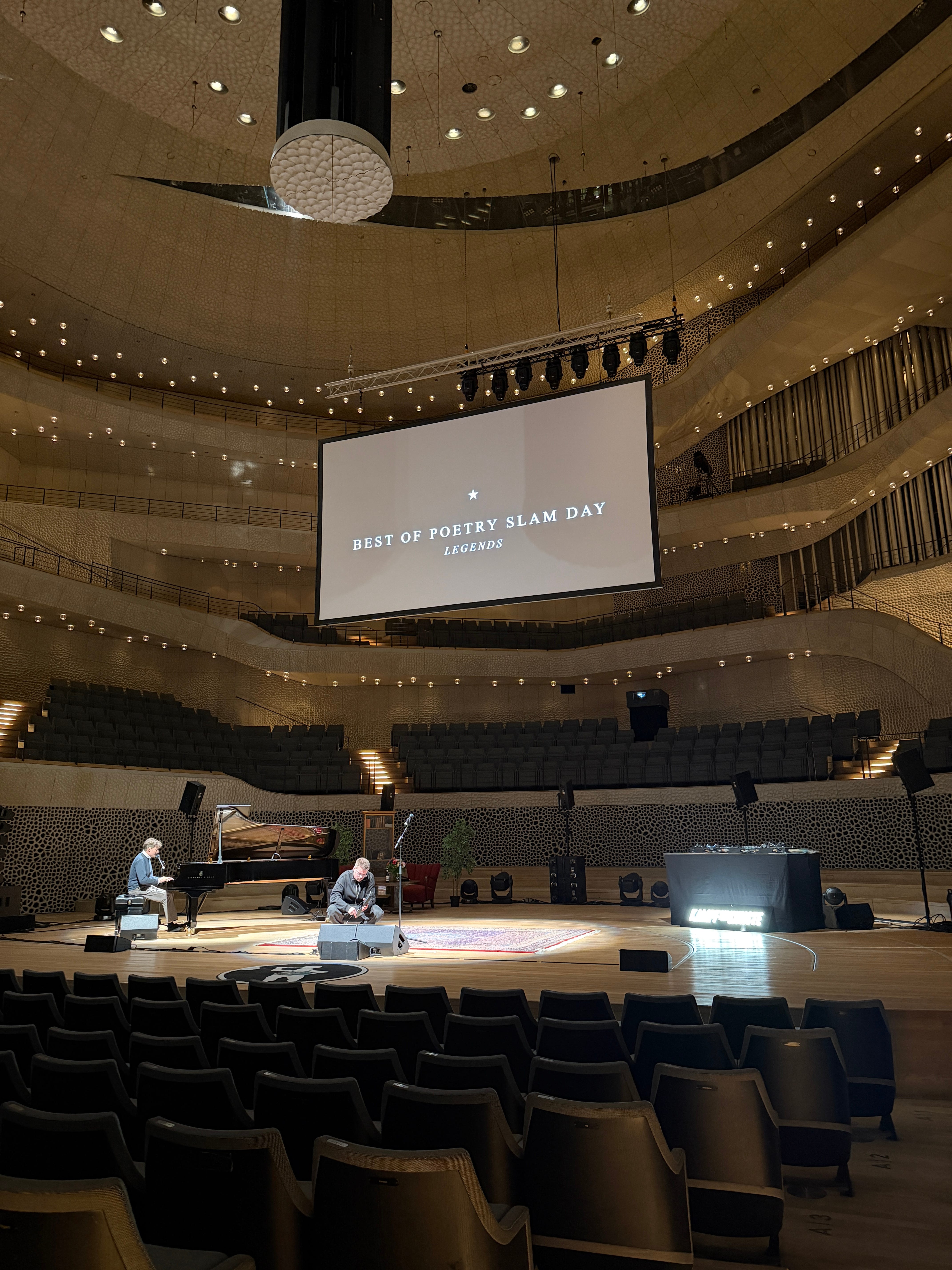 Harry New Year! I am writing this from snowy snowy Hamburg, where I performed last night in the stunning Elbphilharmonie (!) under the Legends Category (!!) as part of a Best of Poetry Slam event to a sold out room of 2200 people (!!!). It was the second largest crowd I have ever performed to (after the Royal Albert Hall gig in 2024), and I was equally proud to get a reaction from my broken German introduction that I had been practising for hours beforehand as I was amused to get absolutely no reaction whatsoever quoting Jamie Tartt in my sunflowers poem and confirming my suspicions that the word Twat doesn’t readily translate in the same way. In 2024 my new year’s resolution was to Be A Legend And Have A Great Time and the two years since have truly been my favourite so far, but it was still nice to have the first part formally acknowledged on the big screen in a country I called home for a year.