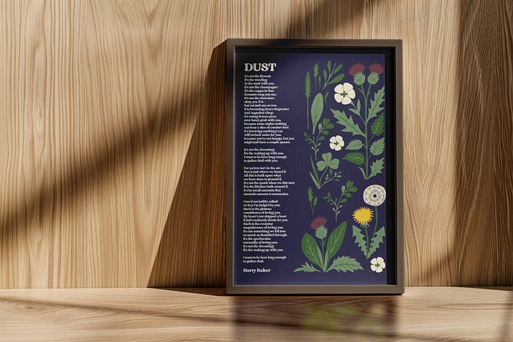 The day I got back from Italy I was able to tick off a poetry bucket list item of performing at Dreamland in Margate, and I’ve got two more bucket list items in the work that I’ll hopefully be able to tell you about soon. Two days later I was performing at Spit Nights in London with a full improv jazz band including a spontaneous Taio Cruz Singalong. Not only did we have a lovely Harry and Chris reunion gig last Saturday but we have got a show on Jazz Fm at 9pm this Saturday which will be very special indeed. In two weeks I kick off Something Borrowed in Margate with the glorious Caitlin O’Ryan, and have just confirmed Rachel Long and Georgie Jones for November and February respectively (taking a break in-between for the Christmas shows) before it’s all things book from March. Grace has just got a new job so I am taking the boy for more days each week and he is the absolute best. finally after YEARS of requests I have finally done some prints of my dust poem with the fab Medley Design Studio and they are completely stunning. See below or click the link above to choose your fave!